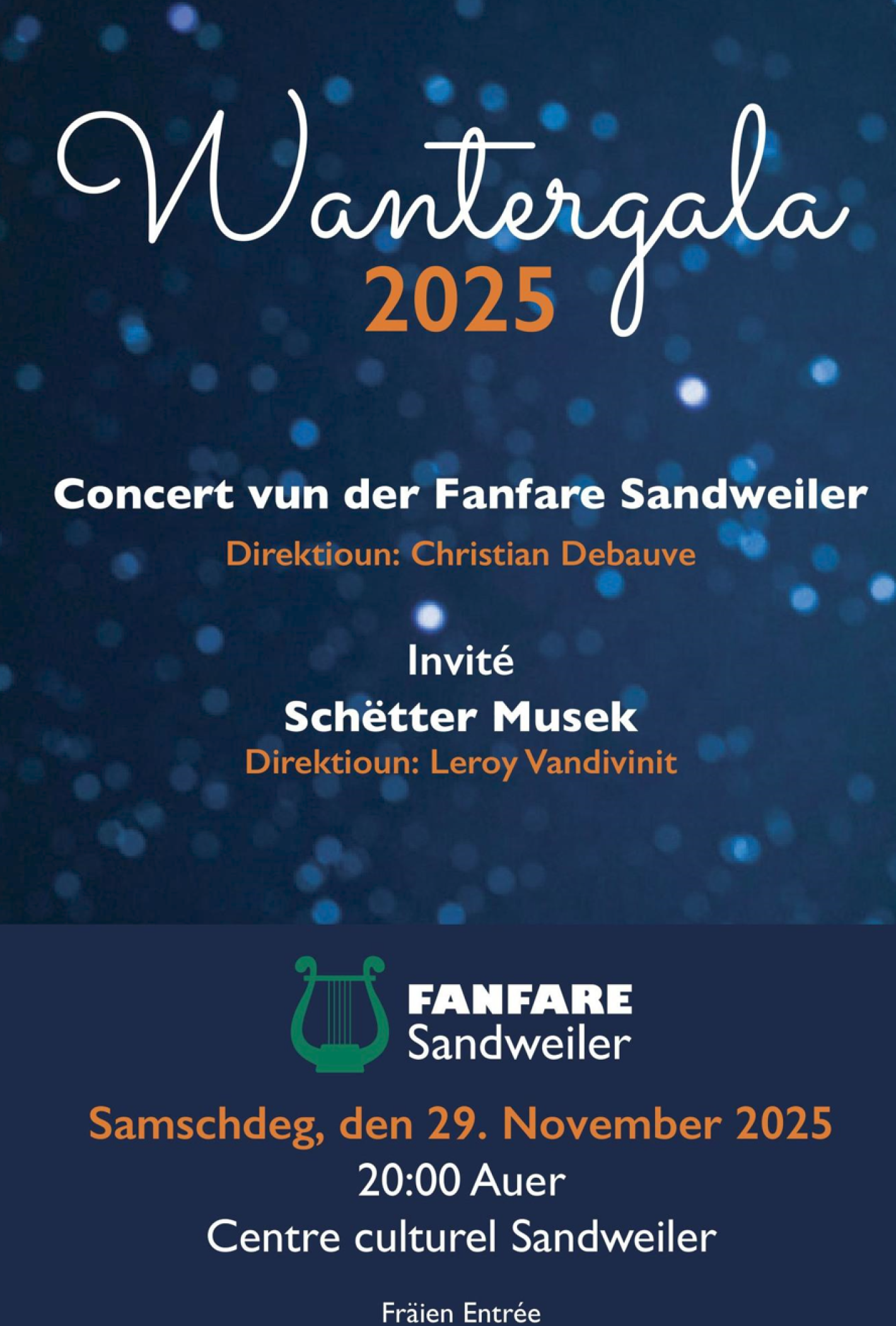 Concert vun der Fanfare Sandweiler. Als Gaascht mat dobäi d'Schëtter Musek.