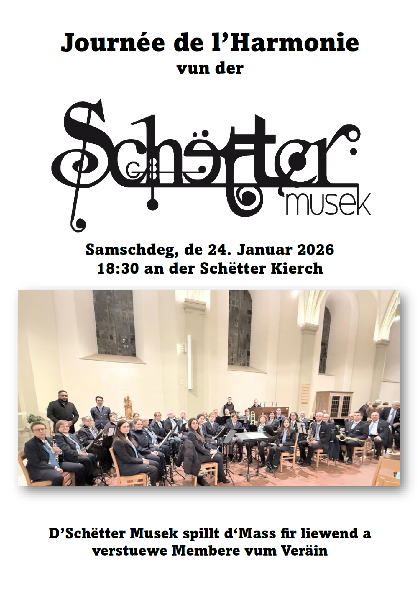 2026-01-23 23:00:00+00:00 18:30 23:59Journée de l'Harmonie vun der Schëtter Musek