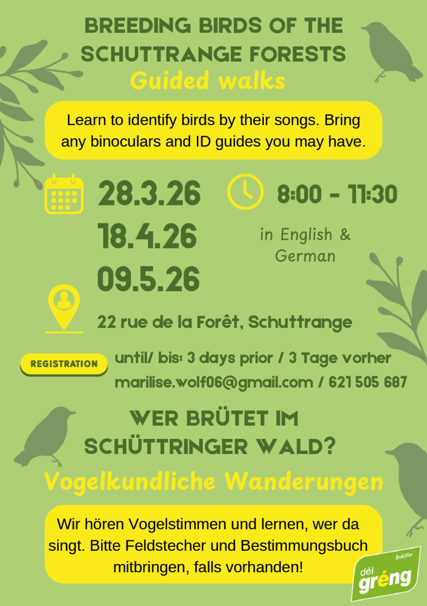 2026-04-18 00:00:00+02:00 08:00 11:30Guided Walks - Breeding Birds of the Schuttrange Forests